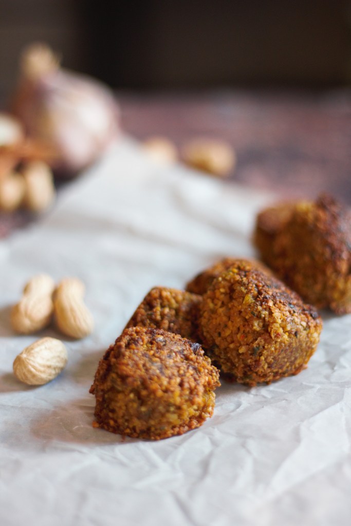 Je voulais absolument faire des falafels à base de pois chiches hydratés et non cuits, je ne suis pas fan de tahini (pâte de sésame) alors j’ai opté pour la cacahuète qui en plus est plus économique ! Nous voilà avec des falafels à la cacahuète hyper croquant comme au restaurant !