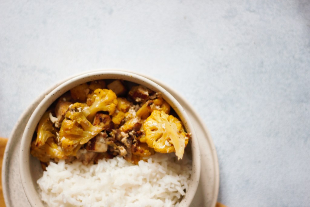 J’ai adoré cette recette hyper facile et rapide, je me suis inspiré de ma recette de quiche que je t’ai posté récemment ! Ici ce sera une poêlée de chou-fleur et tofu soyeux, je voulais remplacer la crème végétale, que je n’avais plus dans mes placards et en plus ça m’a permis d’utiliser le tofu d’une nouvelle manière.